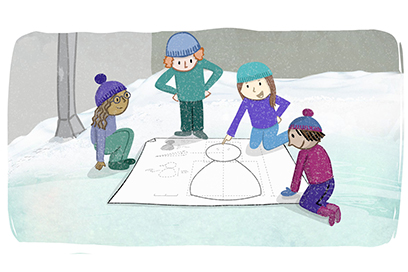 - Esquisses sur glace de Marion Auvin (4′) : Lou et Marius s’amusent dans la rue à faire un bonhomme de neige. Mais maman les rappelle à la maison, Marius doit faire sa clarinette, Lou ses devoirs ! Pfff… mais….incroyable ! Dehors, le bonhomme de neige a bougé.