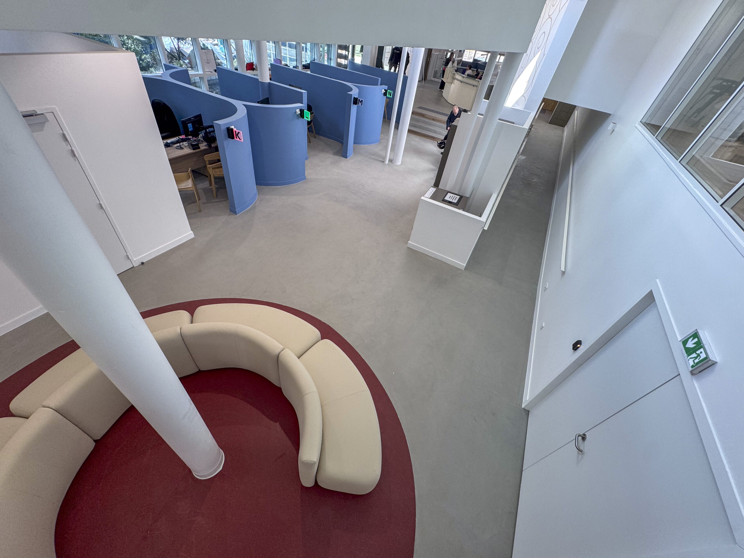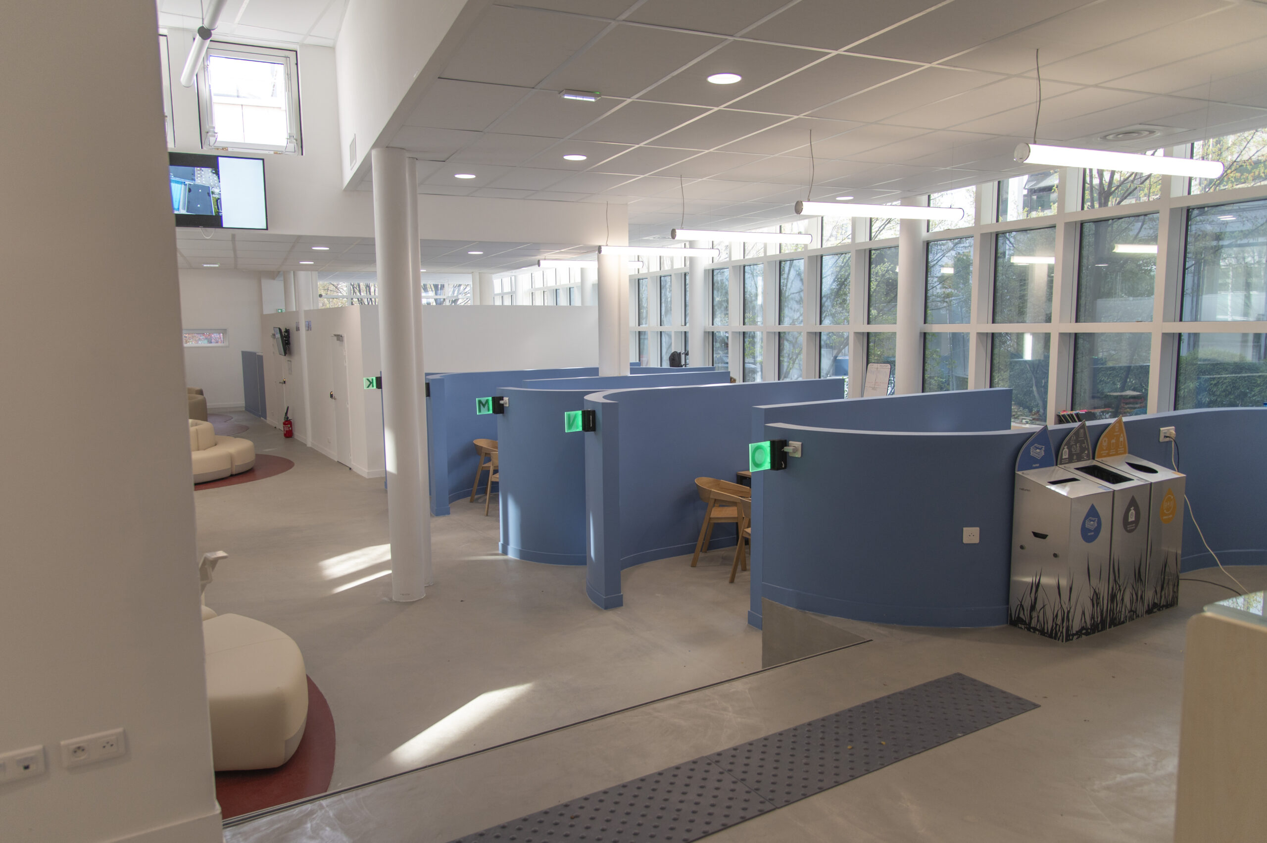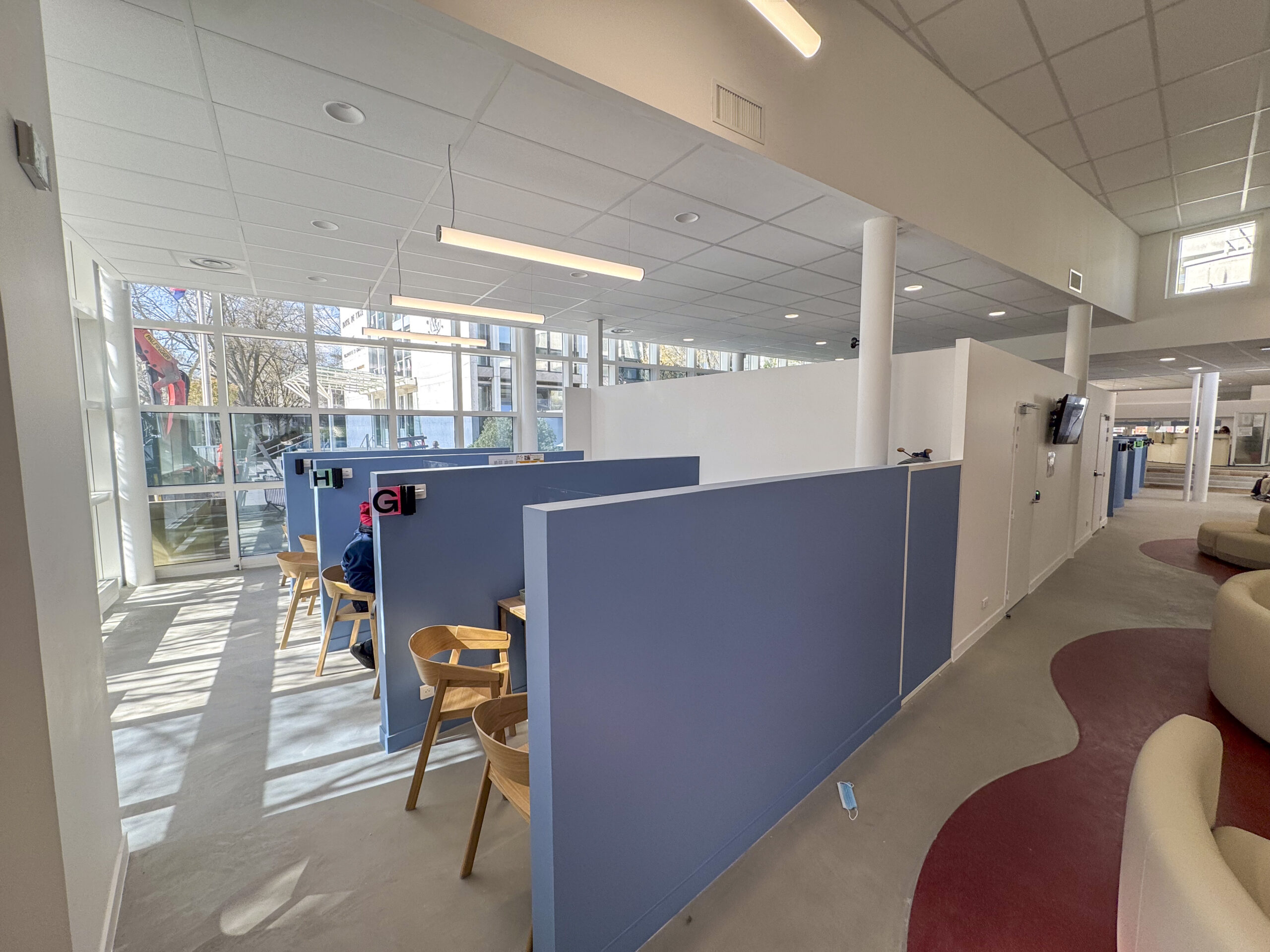 - Clarification des espaces accessibles aux usagers, (guichets, services).
